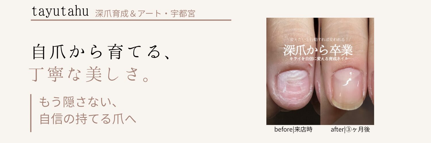 【初めての方】自爪育成って何? 【爪トラブルに悩んでいる人へ】自爪育成ってなんだろう? 2025年1月16日 tayutahu http://jizumekireitayutahu.com/wp-content/uploads/2024/12/IMG_8423.jpg 自爪育成とネイルアート
